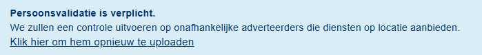 Wij willen dat de advertenties op Sexjobs zo betrouwbaar mogelijk zijn. Om de betrouwbaarheid van de foto's die bij een advertentie worden geplaatst te vergroten vragen wij om een persoonsverificatie.